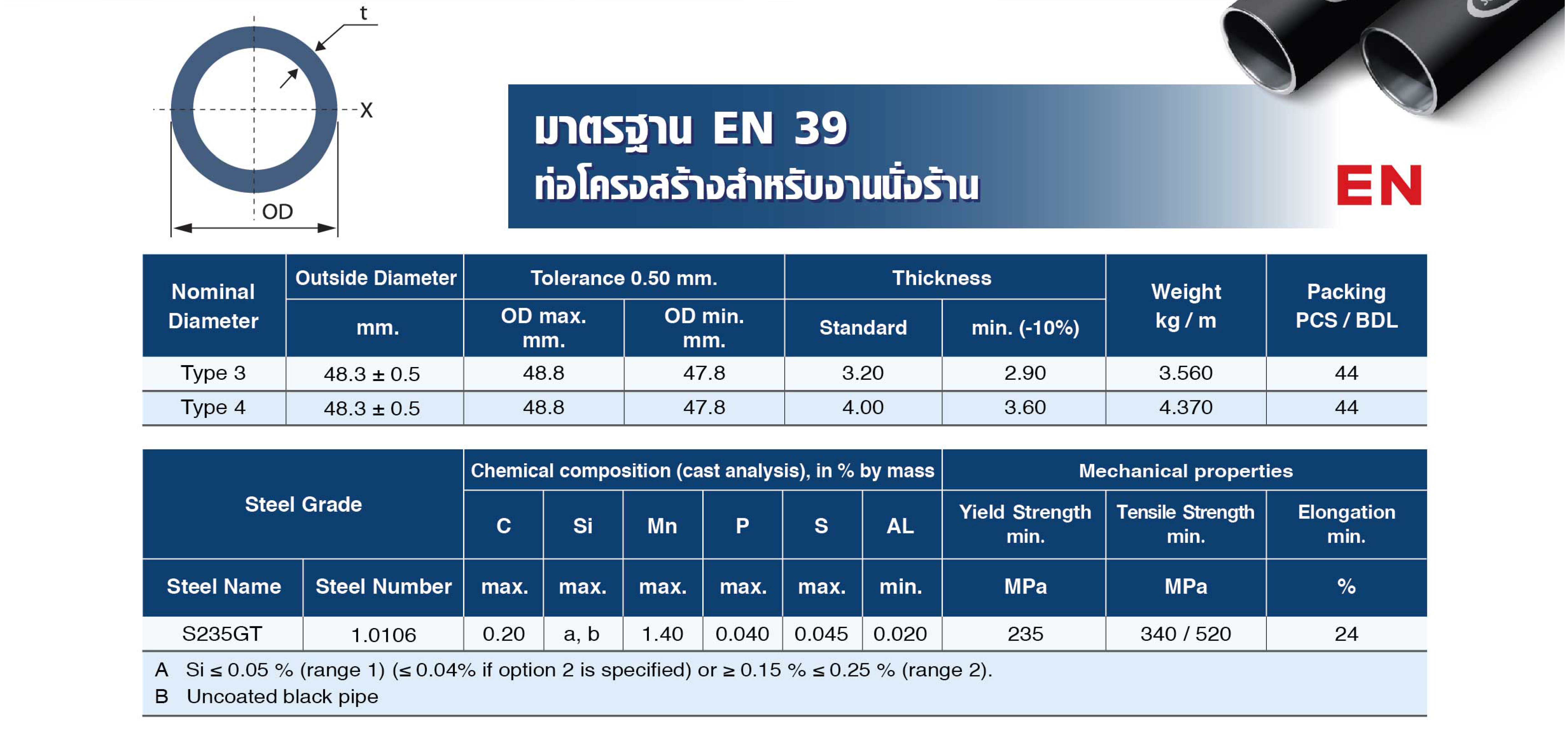 ท่อเหล็ก มาตรฐาน EN 39 ท่อโครงสร้างสำหรับนั่งร้าน